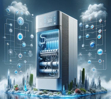 Innovamos al extraer agua de la humedad del aire, una solución ideal para zonas con acceso limitado al agua potable y para aquellos comprometidos con la reducción de su huella ambiental.